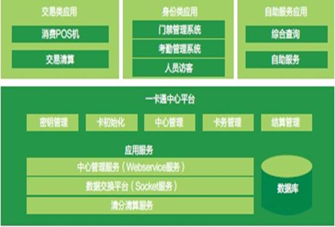 二個核心平臺:一卡通中心平臺包含金融交易平臺和身份認證平臺,金融交易平臺負責一卡通系統中所有的與交易有關的信息的處理和管理,身份認證平臺負責一卡通系統中所有持卡人的綜合身份認證管理;