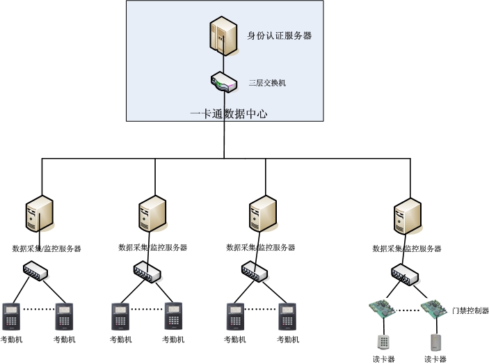 企業一卡通系統最根本的需求是“信息共享、集中控制”,不但可以實現“一卡通”系統內部各分系統之間的信息交換、共享和統一管理,而且可以實現 “一卡通”系統與其他各子系統之間的信息交換,統一管理和聯動控制。因此系統的設計不應是各單個功能的簡單組合,從統一網絡平臺、統一數據庫、統一的身份認證體系、數據傳輸安全、各類管理系統接口、異常處理等軟件總體設計思路的技術實現考慮,使各管理系統,各讀卡終端設備綜合性能的智能化達到最佳系統設計,企業園區一卡通系統作為企業信息化管理的一部分與企業的ERP、OA、MIS、等系統有密切聯系。